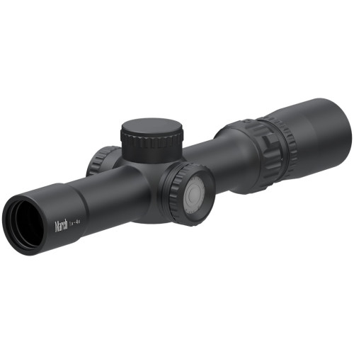 March 1x-4x24mm is suitable for short and middle range hunting with simple features. The 17.8 mm exit pupil at 1x enable the user to concentrate faster on the target. This scope is an excellent choice for short and middle range quarry, including moving targets. It is suitable for the harshest of environments. Compact scope weighing only 490g (17.28oz). The FD-1 and FD-2 reticle has a bright center dot even in daytime.