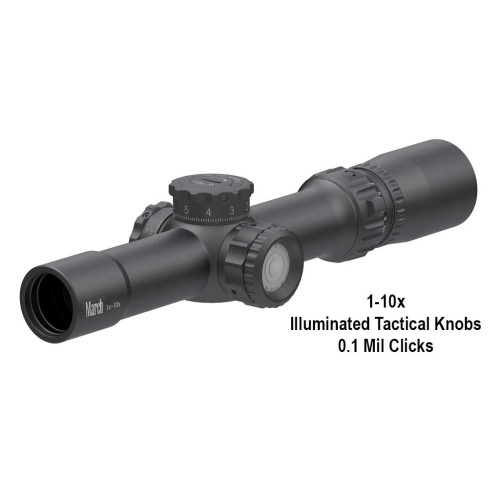 • 1-10x24mm Compact -ILLUMINATED Mil Based Reticles - Tactical Knobs + Zero Set - 0.1 Mil Clicks March D10V24TIML